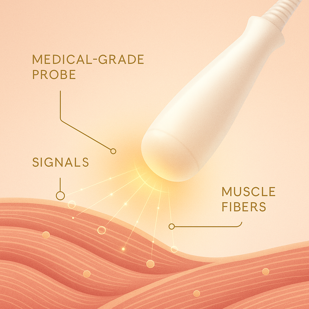 Each 10-minute session delivers up to 30,000 precise contractions, strengthening the pelvic floor faster than traditional Kegels.